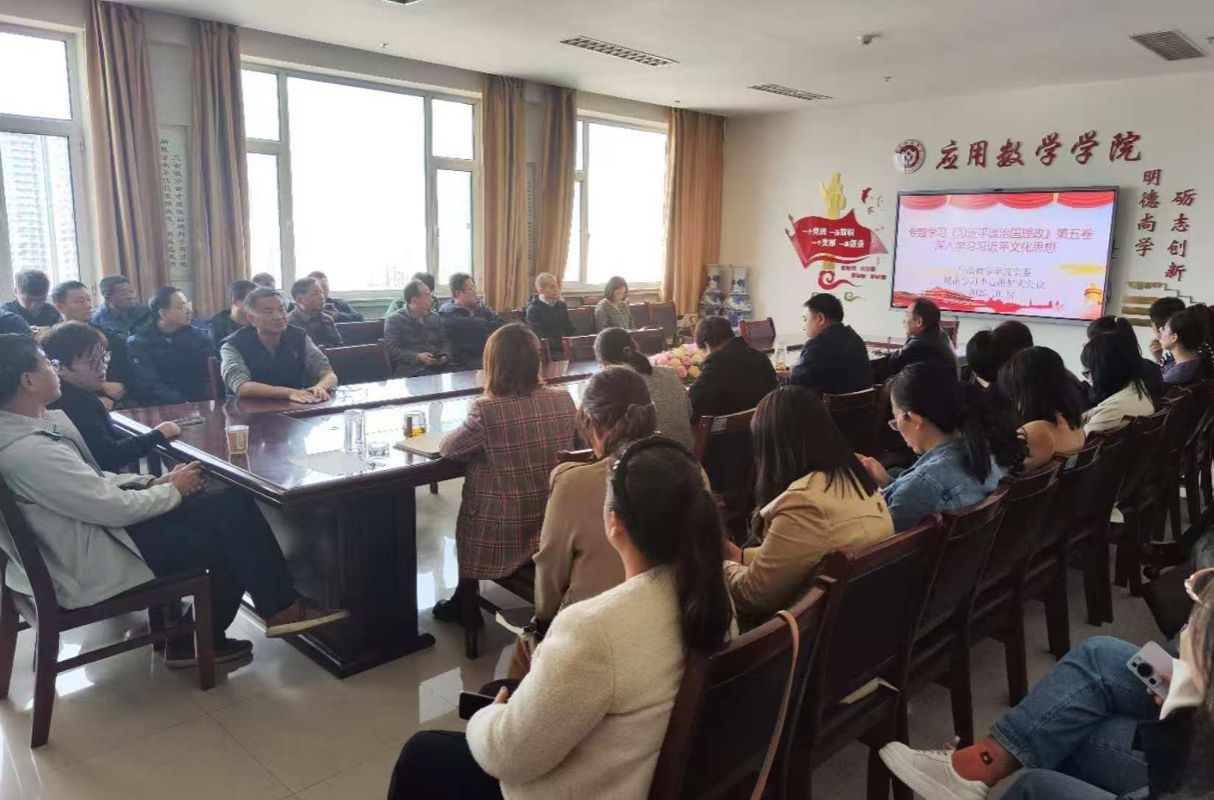 在随后进行的讨论环节中,与会教职工结合自身教学科研工作实际,踊跃发言,畅谈学习体会。有教师表示,将在数学课程教学中,有机融入中华优秀传统文化元素作为课程思政内容,引导学生在学习专业知识的同时感悟文化魅力,增强文化自信。另有教师谈到,在科研工作中要自觉践行“两个结合”的要求,立足中国国情和实际需求,探索具有中国特色的数学研究范式,为国家解决重大实际问题贡献数学智慧和力量。