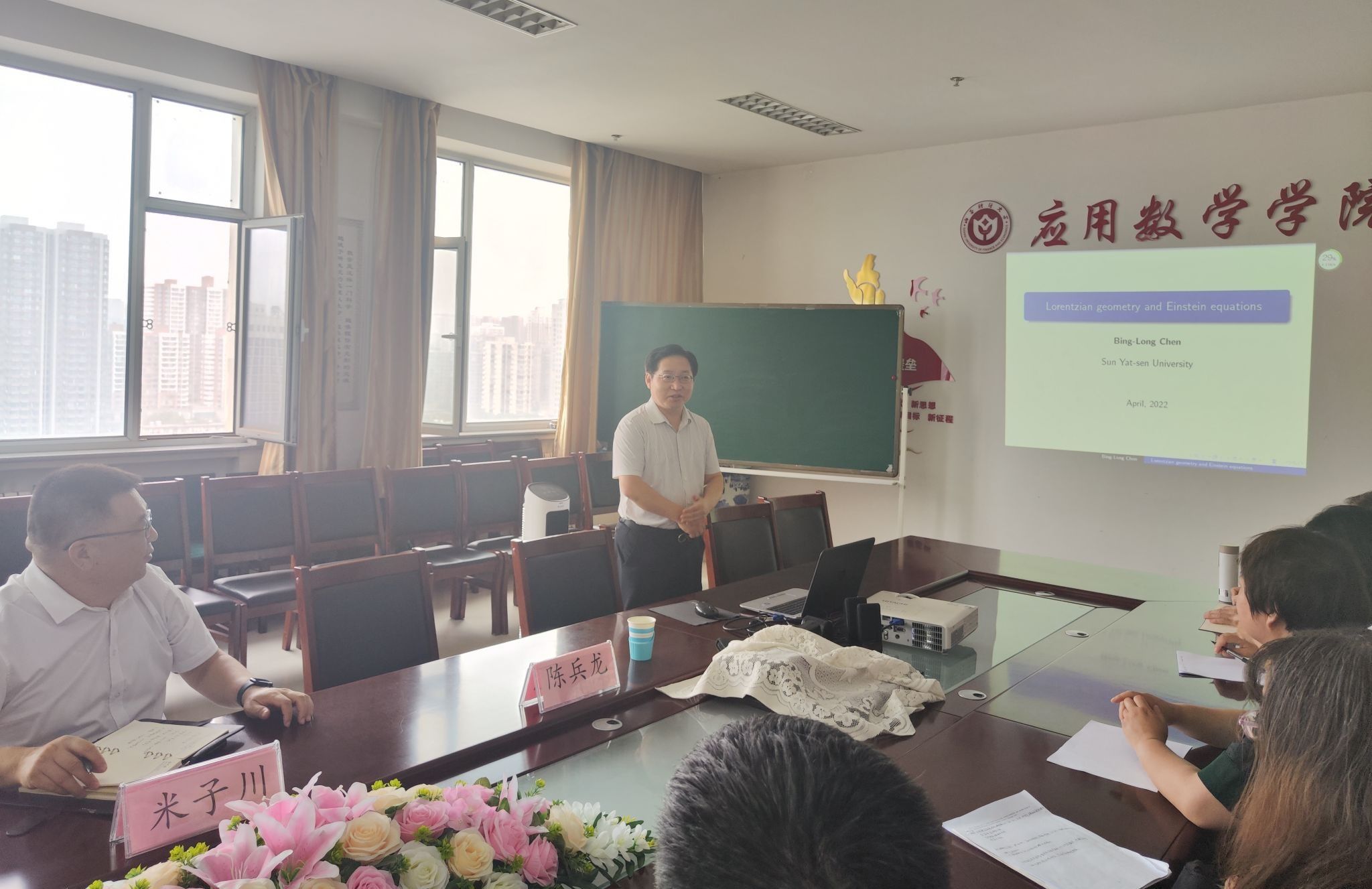 陈兵龙教授的报告内容丰富详实,研究方法新颖独特,数据论证严密精确。在报告中,陈教授特别介绍了用非欧几何研究偏微分方程的新方法,同时介绍了自己在该领域取得的重要成果,让与会人员深受启发。