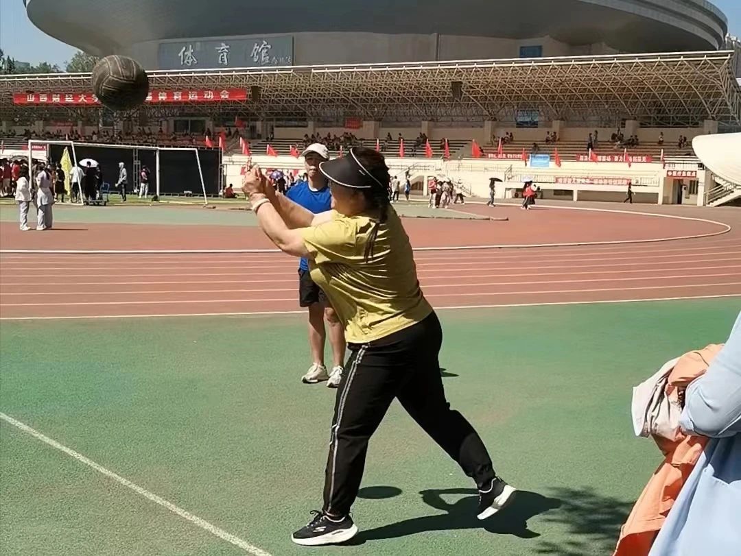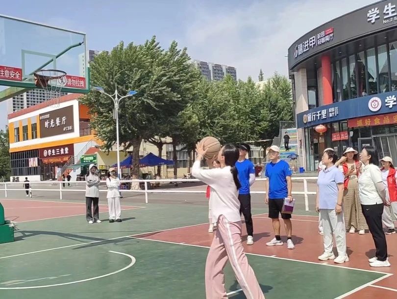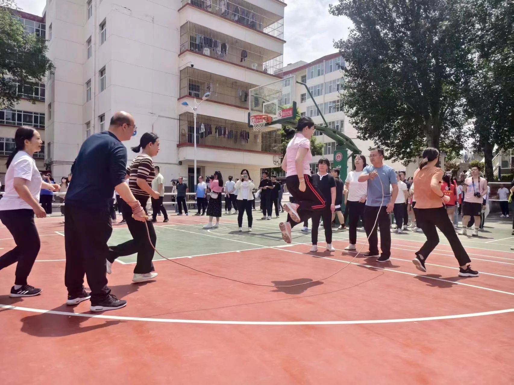 的教师们,活力满满,在集体跳绳,滚铁环,抢收抢种,投篮等众多项目中展现运动的魅力。