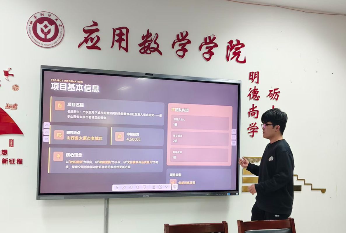 在指导教师引领下,各团队聚焦数字经济、机器学习算法优化、金融科技建模等前沿领域,结合应用数学学科特色,确立了一批兼具理论价值与应用前景的研究课题。在1月18日举行的答辩评审会上,学院组织专家依据创新性、可行性、应用价值等五项标准对各项目进行综合评审,并提出建设性修改建议。
