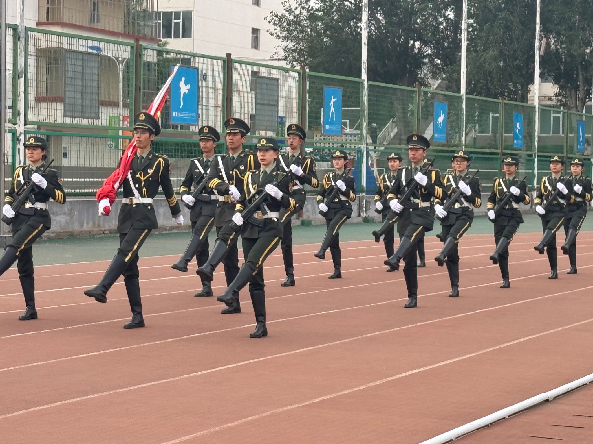 仪式伊始,护旗队步伐整齐、英姿飒爽,护卫着五星红旗走向升旗台。随着激昂的国歌奏响,五星红旗冉冉升起,全体师生肃穆而立,目光坚定地追随国旗,齐声高唱国歌,爱国之情在每个人心中澎湃。